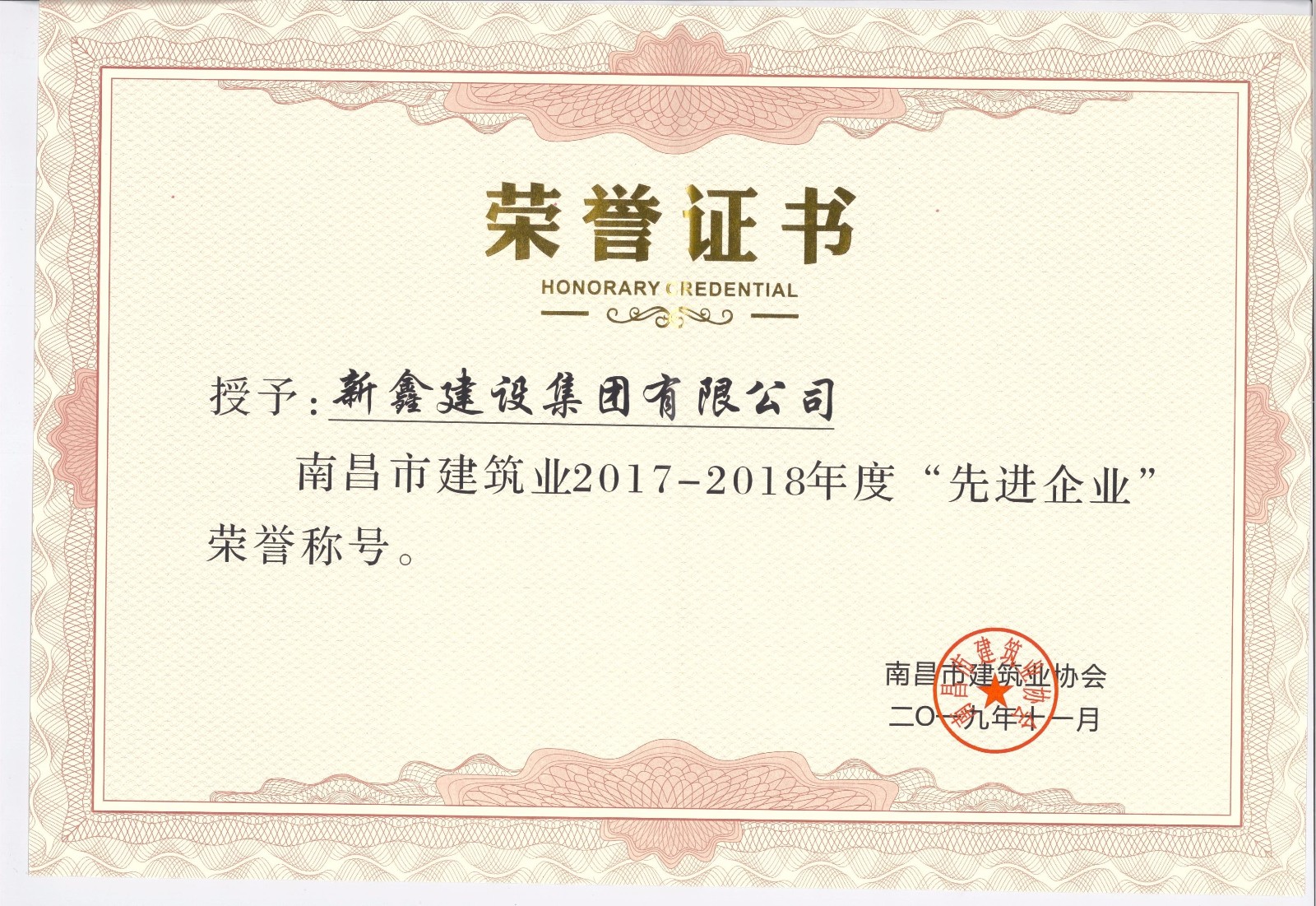 新鑫建設集團有限公司榮獲南昌市建筑業(yè)2017-20...